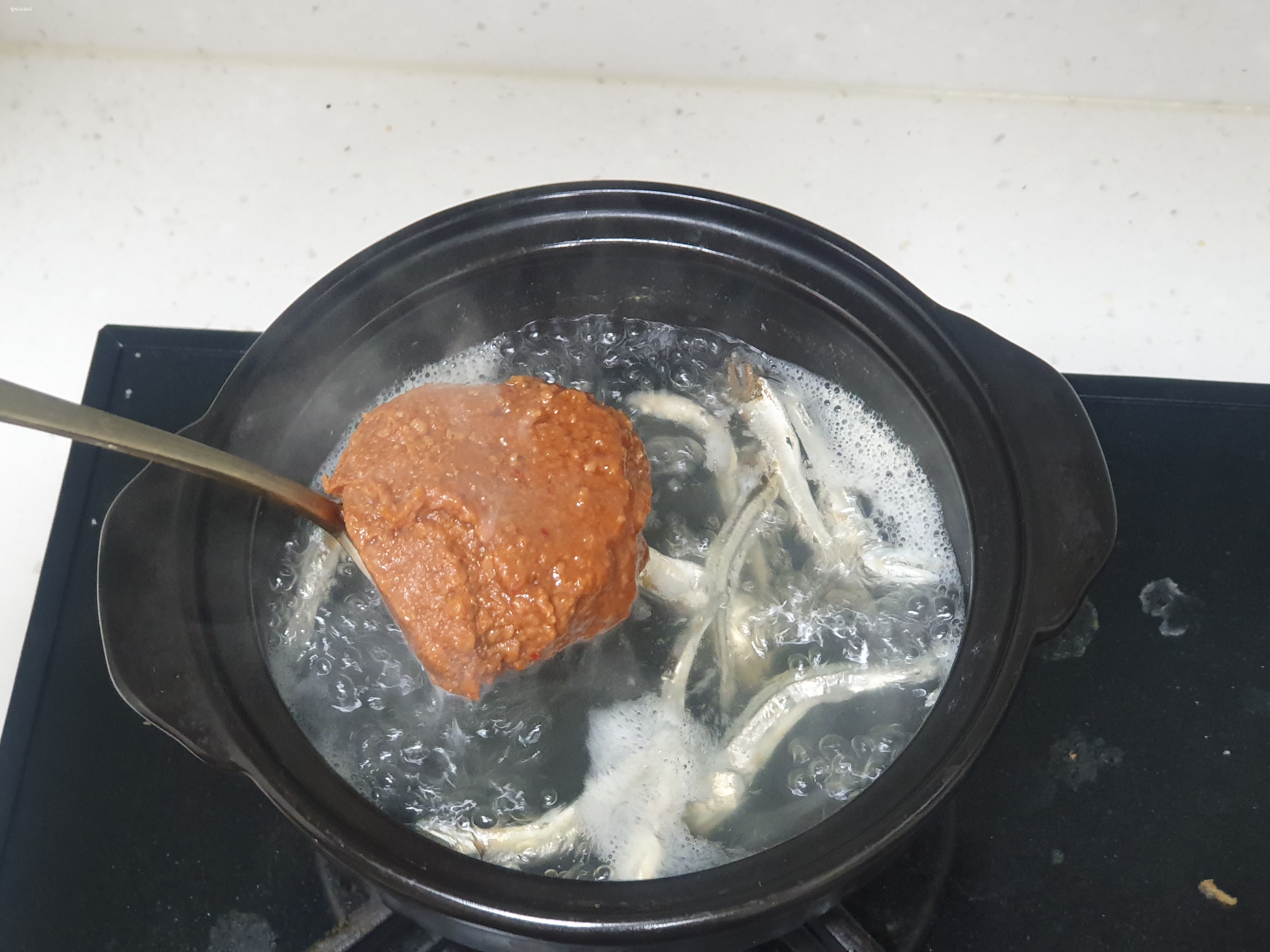 저는 된장찌개 맛있게 끓이기를 할 때 다시마와 멸치를 넣고, 끓이는데, 다시마팩에 넣어서 하기도 하는데, 찌개의 양이 많지 않을 때는 그냥 이렇게 넣고 끓입니다. 그러다가 다시마는 건저내고 멸치만 더 끓여줍니다. 다시마는 오래 끓이게 되면 진액처럼 나오게 되어 텁텁한 맛이랄까요? 깔끔한 맛이 나지 않아 건져 내는 편입니다.