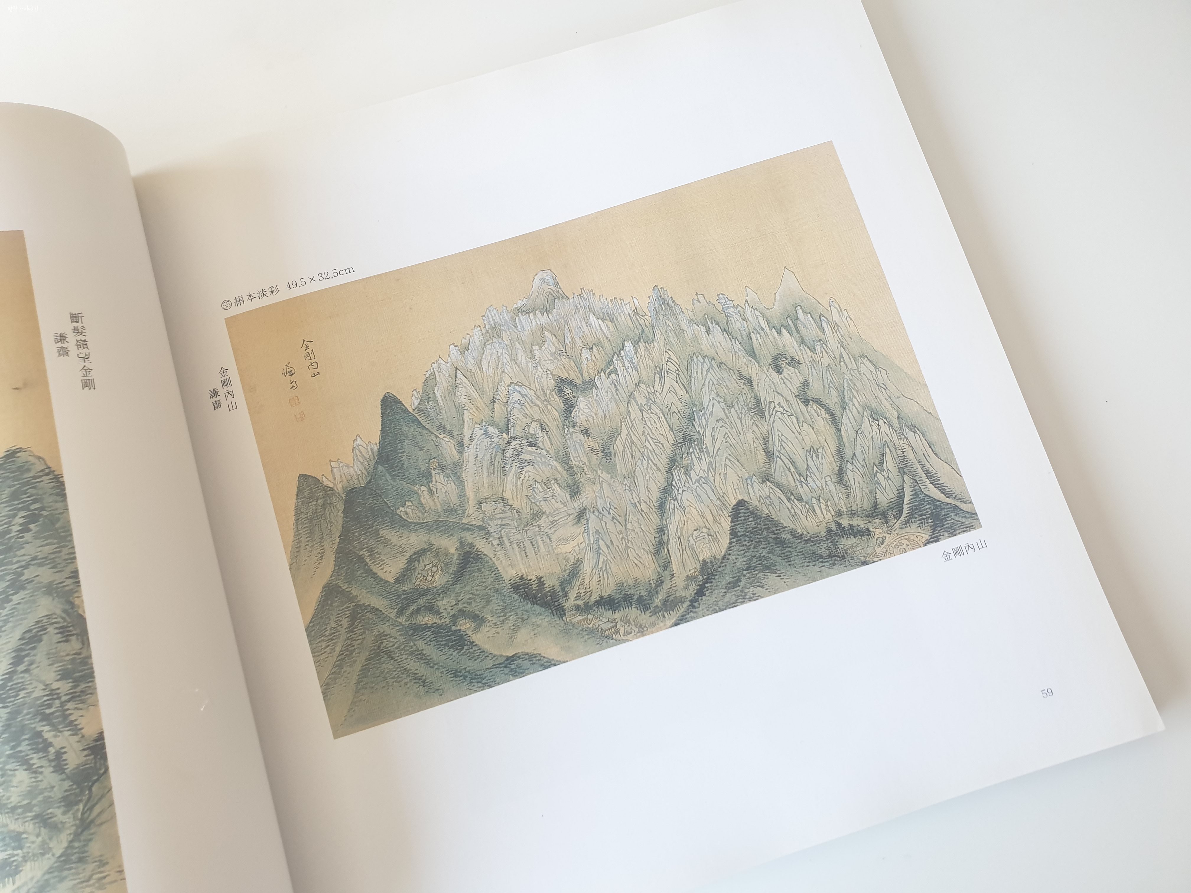 이 방법은 겸재가 노년기에 터득한 우주 자연의 섭리를 조선성리학에 투영시켜서 진경산수화로 반사해낸 결정체라 할 수 있습니다. 금강내산이란 겸재 자필화제라래 겸제라는 관서가 있고, 정, 선 이라는 두방의 방형 백문인장이 찍혀있습니다.