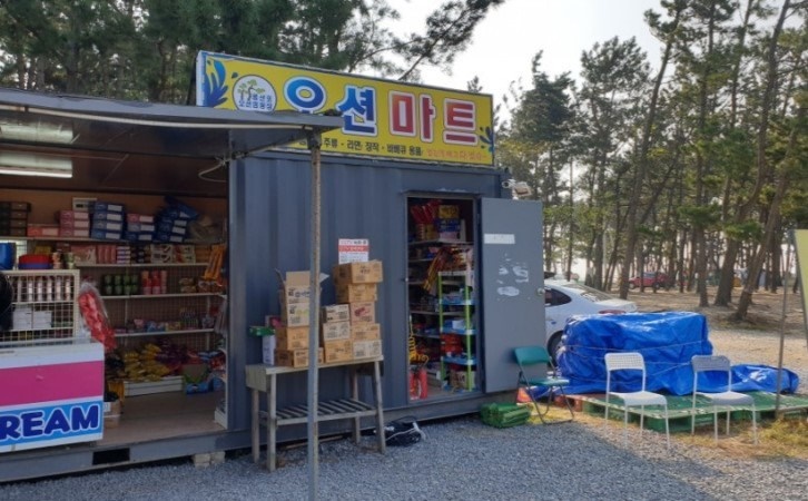 캠핑장 중에는 음식을 배달을 시킬 수 있는 곳이 있는데, 이곳은 안쪽에 있어서 근처 음식점이 없습니다. 음식은 다 챙겨자세요. 매점은 있기는 하지만 물건이 많지는 않았습니다.