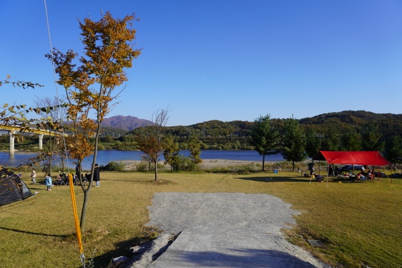 항상 이곳에 오면 강 앞에 있는 잔디에 사이트에 자리를 잡습니다. 제가 이곳이 좋은 이유는 잔디라서인지만 이곳은 사이트 간격이 넓어서 다른사람들과 거리를 둘 수 있다는 장점이 있습니다.