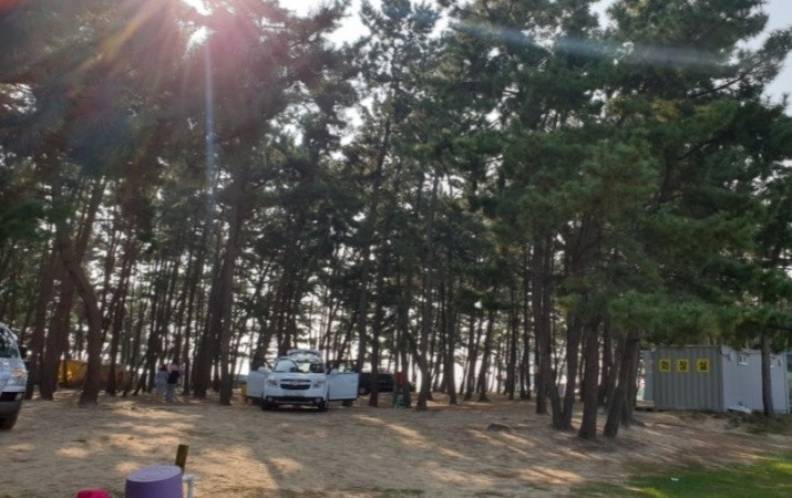 두번째는 서울근교라고 하기에는 좀 먼곳인데, 태안의 몽산포캠핑장입니다. 이곳은 살짝 호불호가 갈리는 곳이에요. 잔디사이트도 있고, 소나무 쪽 사이트가 있는데, 송진자루나 모래 때문에 불편하다는 분도 계시더라고요. 저는 소나무쪽도 잔디사이트 쪽도 다 있어보았는데, 둘다 만족했습니다.