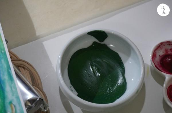 분채물감을 잘 개어줘야 채색도 잘되기 때문에 그냥 대강 대강 해주면 그림을 그리다가 후회를 하시더라고요.