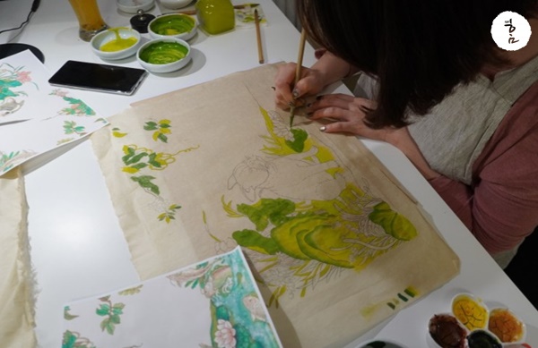 분채물감을 잘 개어줘야 채색도 잘되기 때문에 그냥 대강 대강 해주면 그림을 그리다가 후회를 하시더라고요.