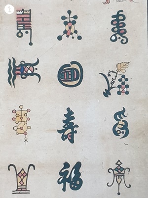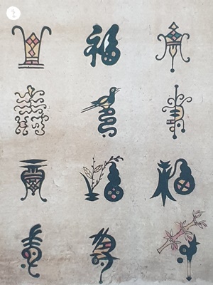 효제도 이외도 문자도로서 백수백복도는 수 자와 복자를 수 많은 형태로 반복이 되어 상서로움을 증폭시키는 그림입니다.