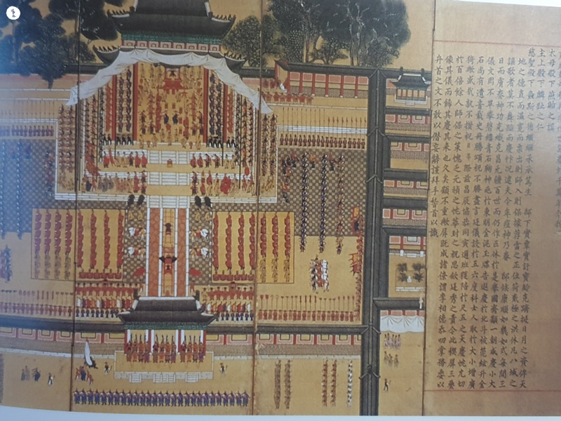 순종은 1875년 2월 18일 왕세자로 책봉이 되면서 책봉례가 창덕궁 인정전에사 치러졌으므로 그림과는 차이가 있습니다. 왕세자 책봉례 의싱 그림을 추가함을써 천연두 회복 축하의 의미를 더욱 되새기고자 한 듯합니다.