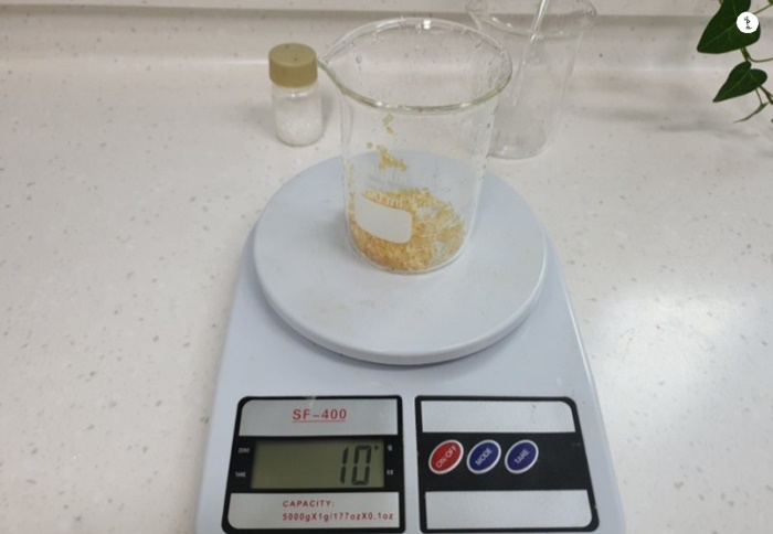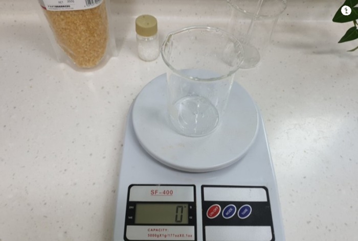 민화 교반수만드는법 비커를 올리고 나서 측정합니다. 아교는 10G.