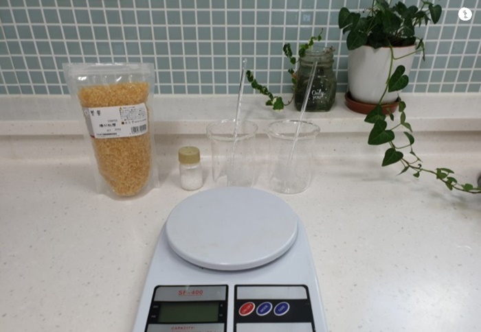 아교를 찬물로 하는 이유는 불리기 위함입니다. 녹일때는 뜨거운 물에 녹이지만 처음에 알아교를 비커에 넣은 후 약 3시간 이상 담두어 놓게 되면 점점 불어나기 시작하는데요.