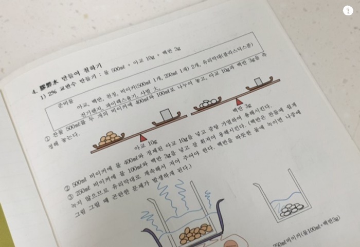 백반은 3G을 넣습니다. 만약 물이 1000ML일 경우는 두배로 넣어주면 됩니다.
