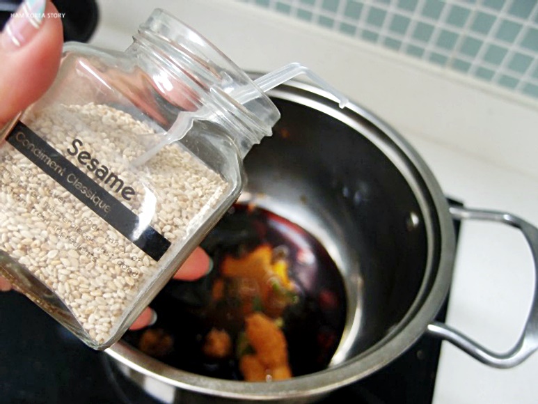 고춧가루, 깨, 설탕, 간장, 물엿, 다시마